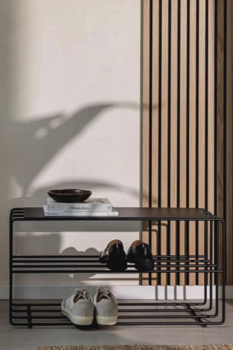Descripción Organiza tus tenis, zapatos, pantuflas o chanclas de manera práctica y elegante. Esta zapatera de estructura metálica de alta resistencia es perfecta para colocar en cualquier espacio de tu casa: la entrada, el armario o junto a la cama. Su acabado negro mate premium o blanco combina con cualquier estilo.