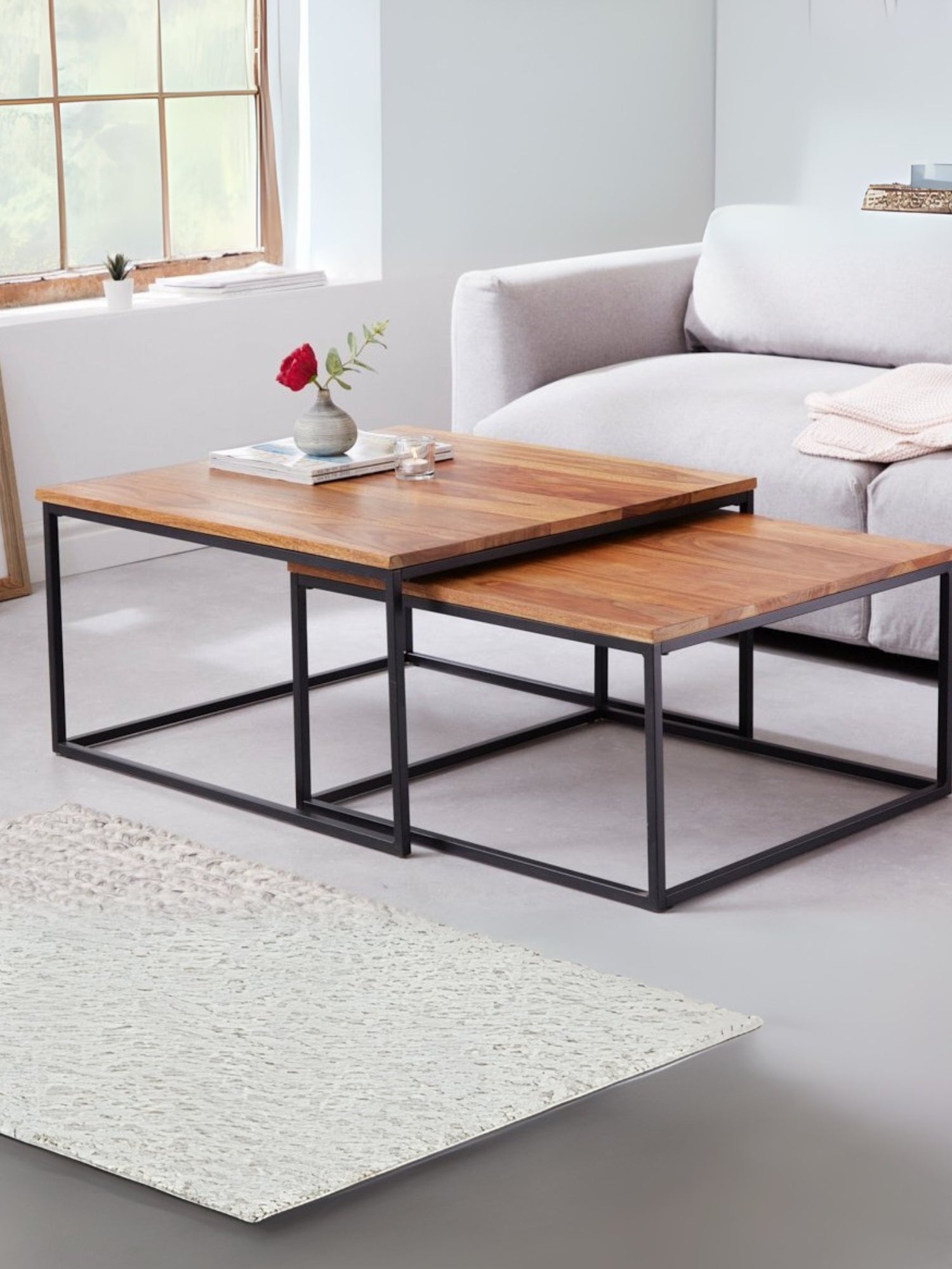 - Dimensiones: Mesa alta: 40 cm altura 70 cm (largo) x 70cm (ancho). Mesa baja: 35 cm altura 60 cm(largo) x 60 cm (ancho)