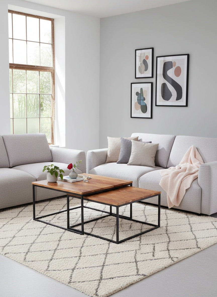 Nuestra mesa de sala está diseñada con una estructura de herrería resistente y una hermosa superficie de madera de calidad cedro. La combinación de estos materiales garantiza que la mesa sea duradera y resistente al desgaste diario.