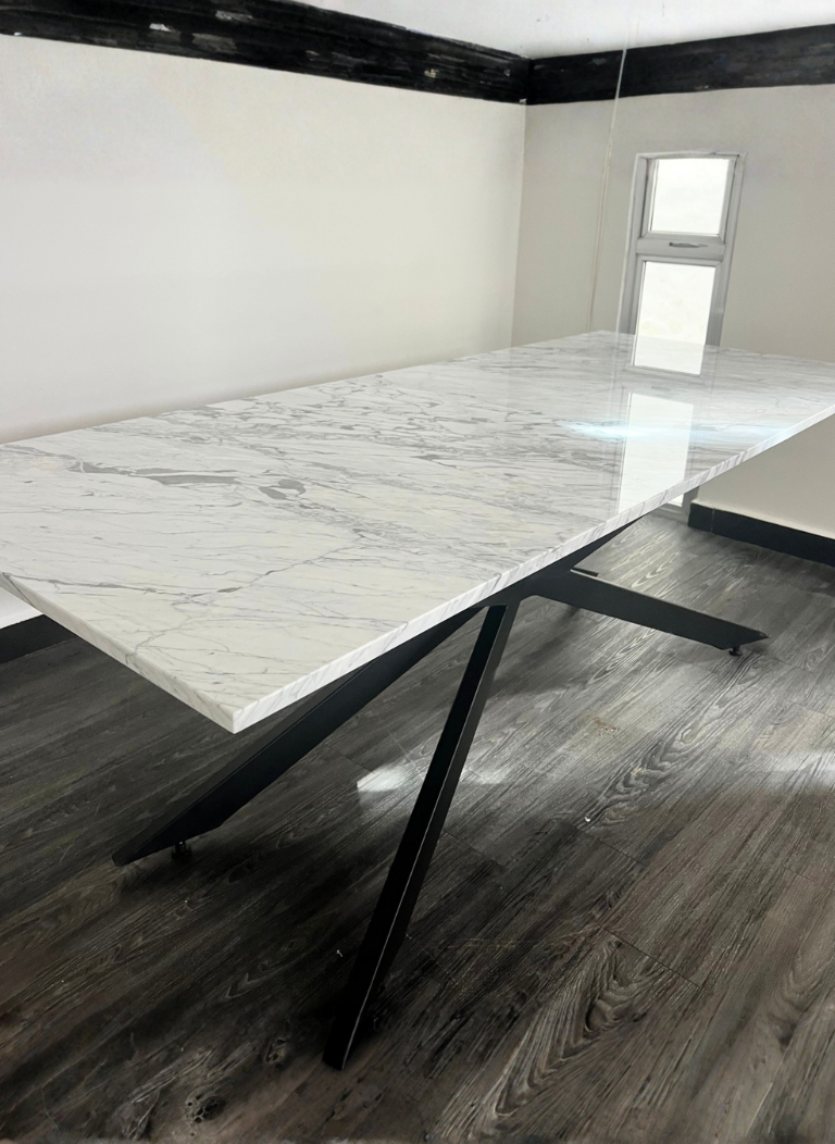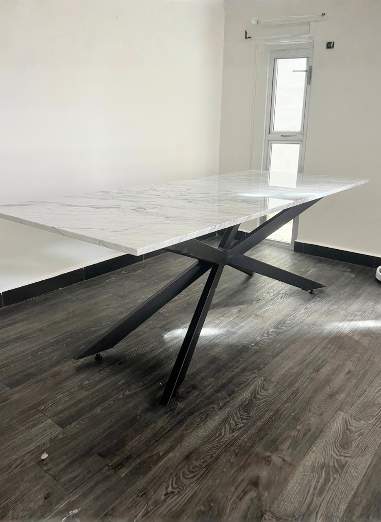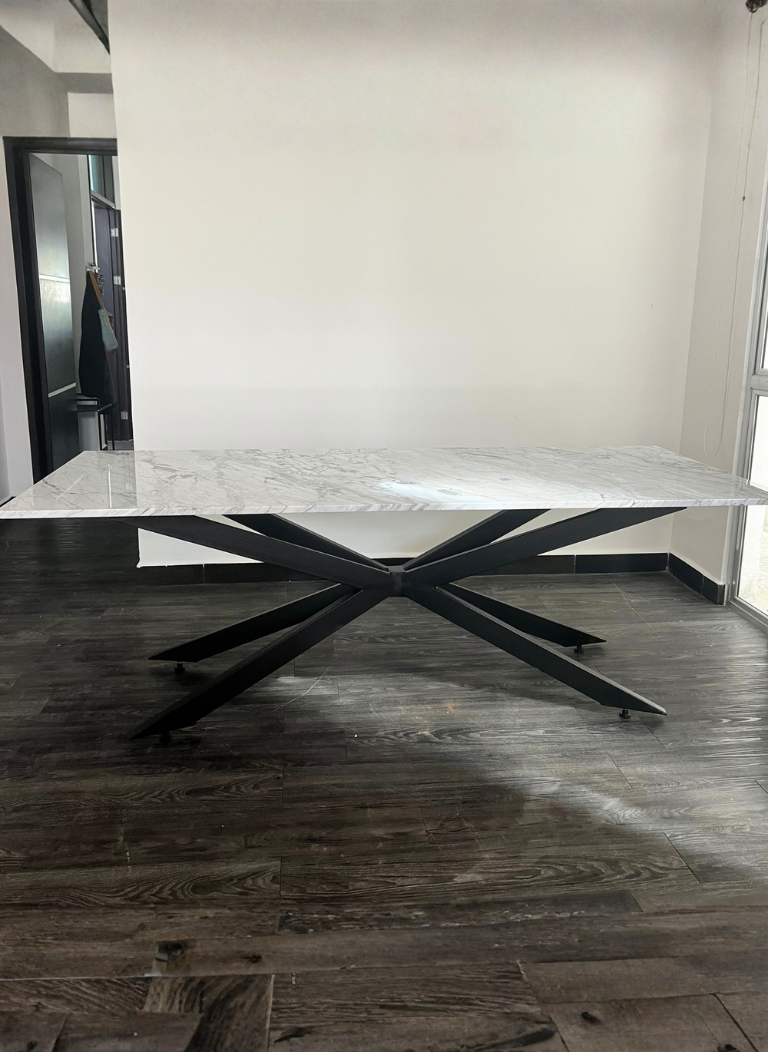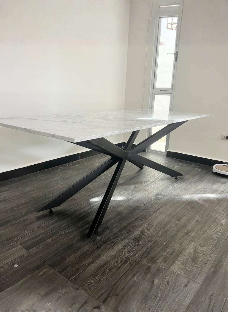 - Descripción: mesa para comedor, una pieza de mobiliario de alta gama, diseñada para tu mesa comedor ideal. Su característica más destacada es su cubierta de mármol Blanco Carrara