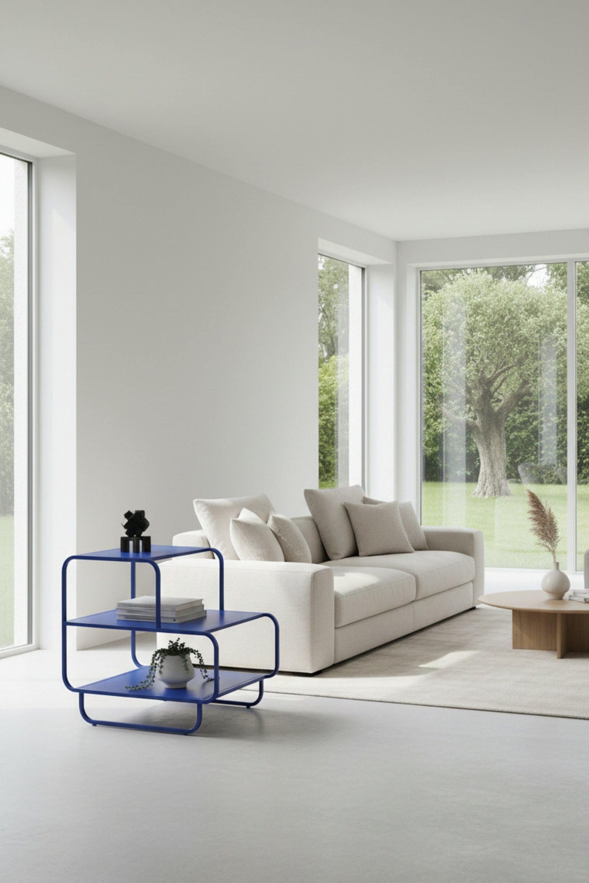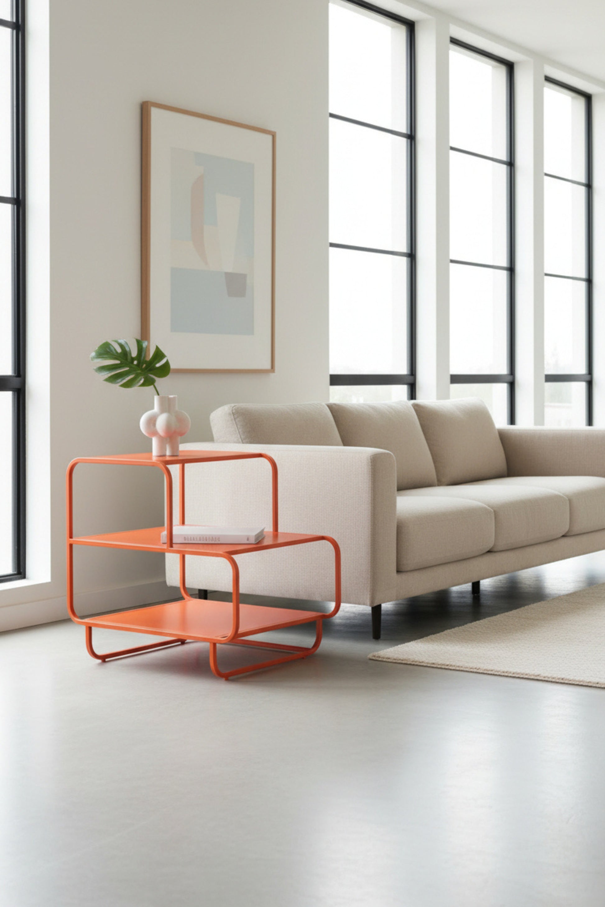 Mesa auxiliar de tres niveles que eleva la funcionalidad y el estilo de cualquier espacio. Su diseño limpio y moderno en acero combina practicidad y estética, convirtiéndola en el complemento perfecto para salas, recámaras u oficinas. Ideal para organizar libros, plantas, objetos decorativos o lo que tú imagines.