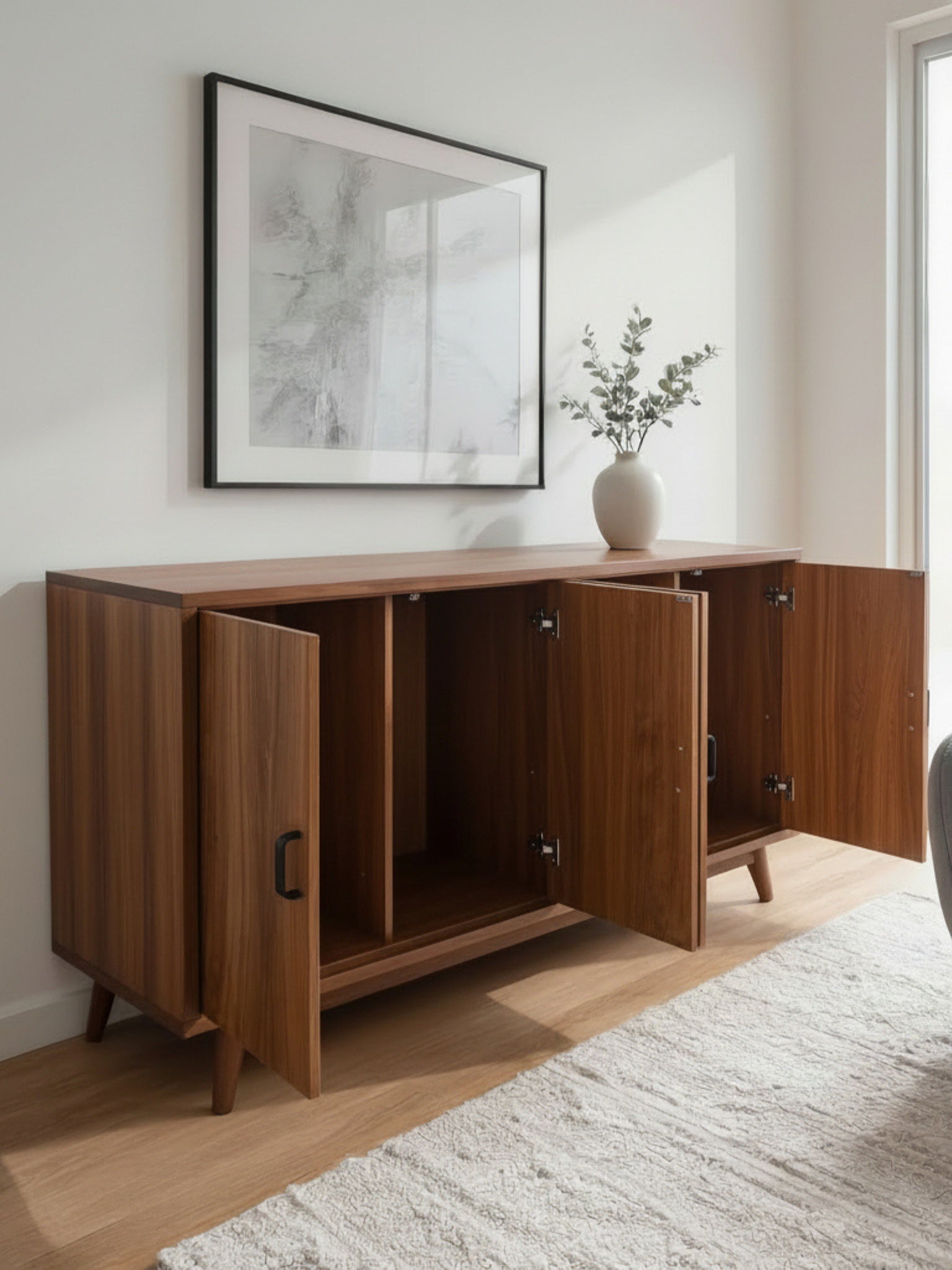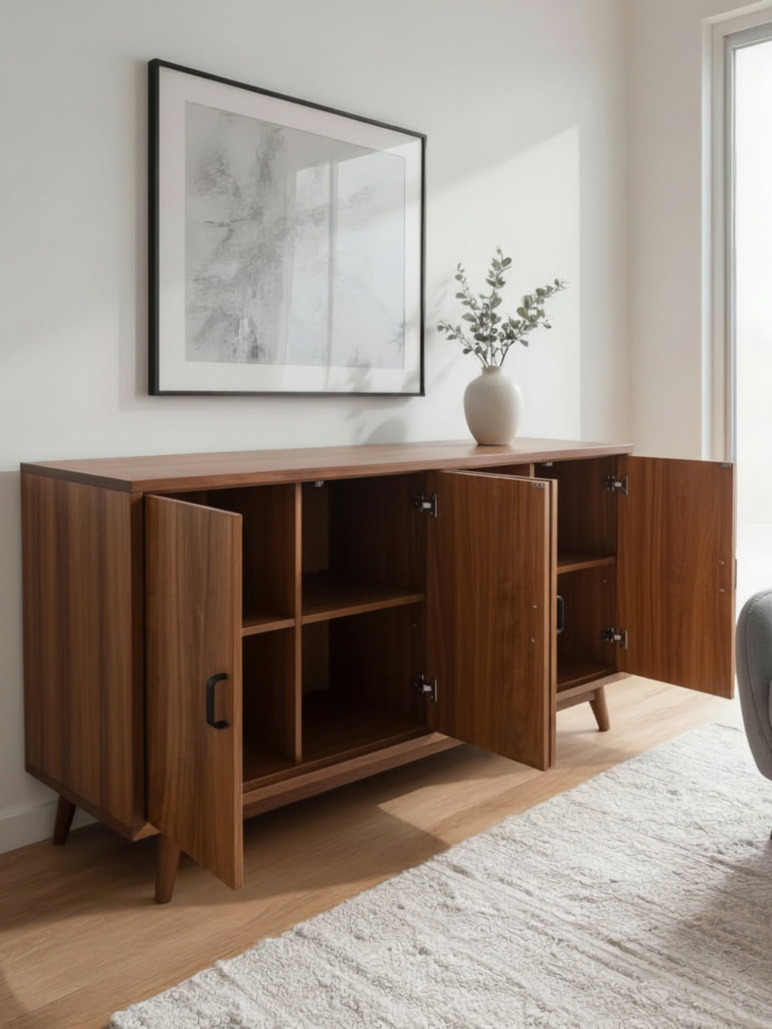 Bufetera versátil diseñado para almacenar y exhibir objetos decorativos, cristalería o accesorios del hogar. Su diseño aporta equilibrio y carácter al espacio, ayudando a mantener el orden mientras complementa la decoración. Ideal para integrarse en comedores, salas o áreas sociales, combinando estética y practicidad en una sola pieza.