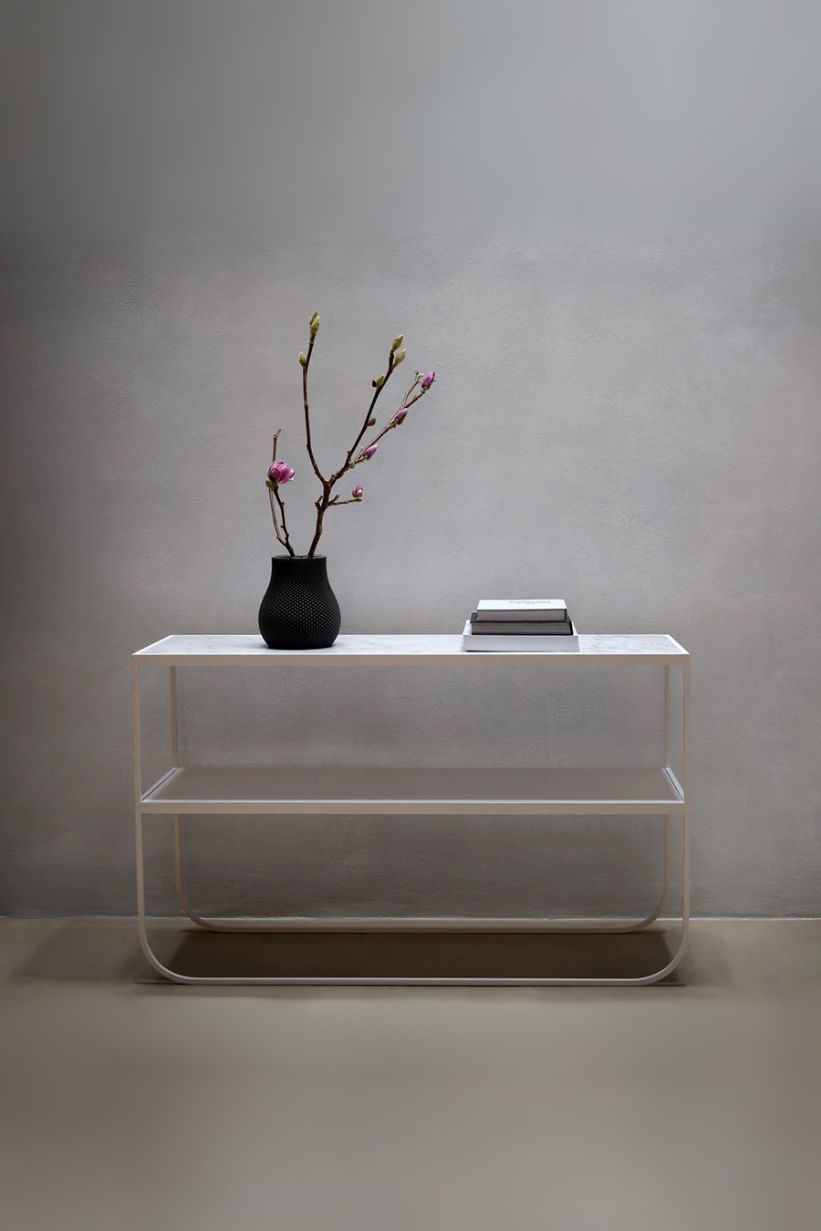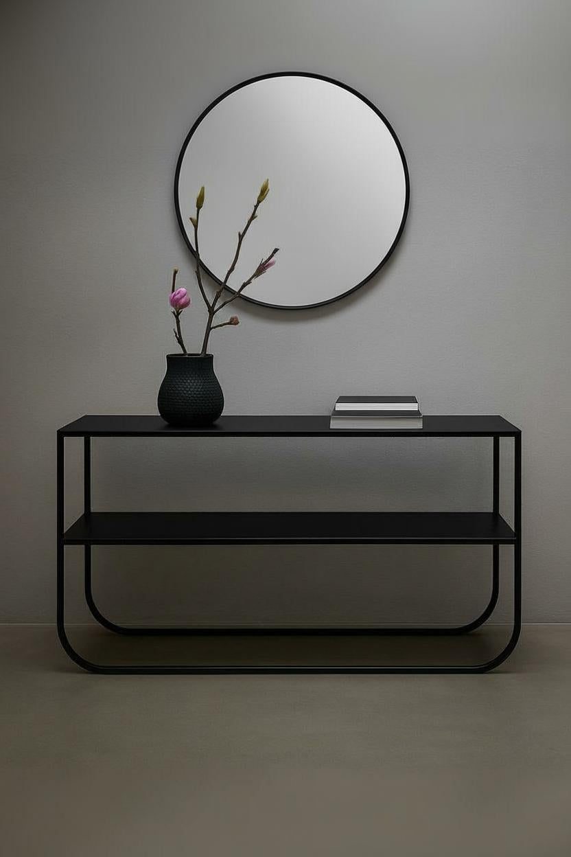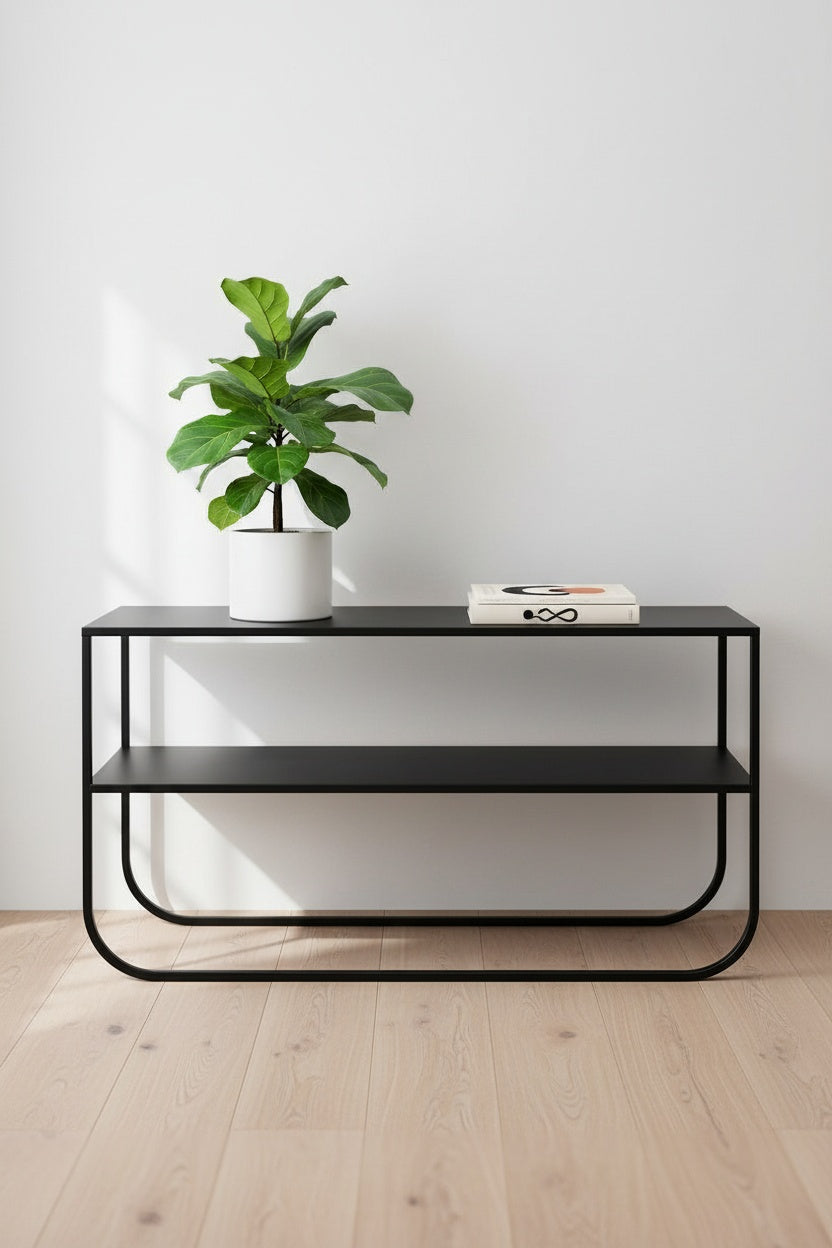 Además de su atractivo estético, esta consola es altamente funcional. Puede utilizarse para exhibir objetos decorativos, libros o plantas, o bien como superficie práctica para colocar artículos de uso cotidiano como llaves, carteras o dispositivos móviles. Gracias a sus dimensiones equilibradas, se adapta perfectamente a pasillos, recibidores o salas de estar.