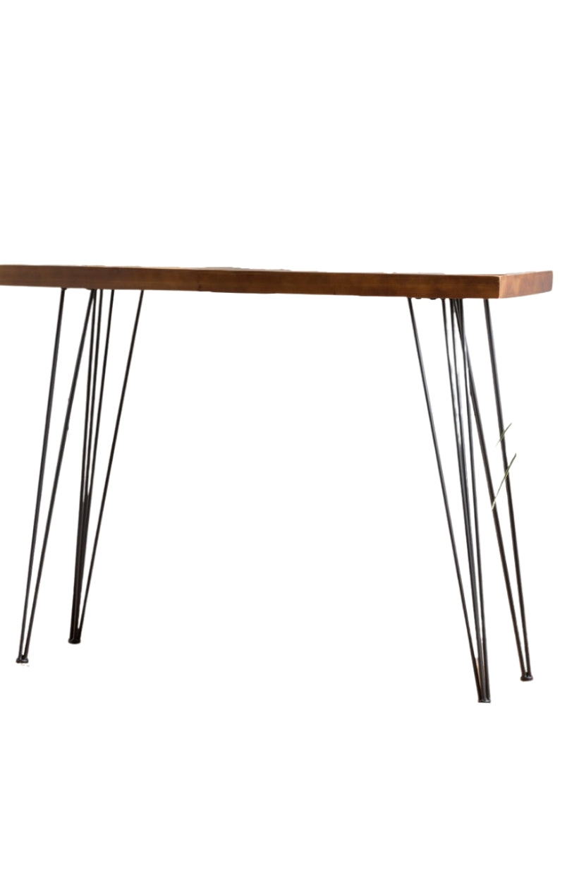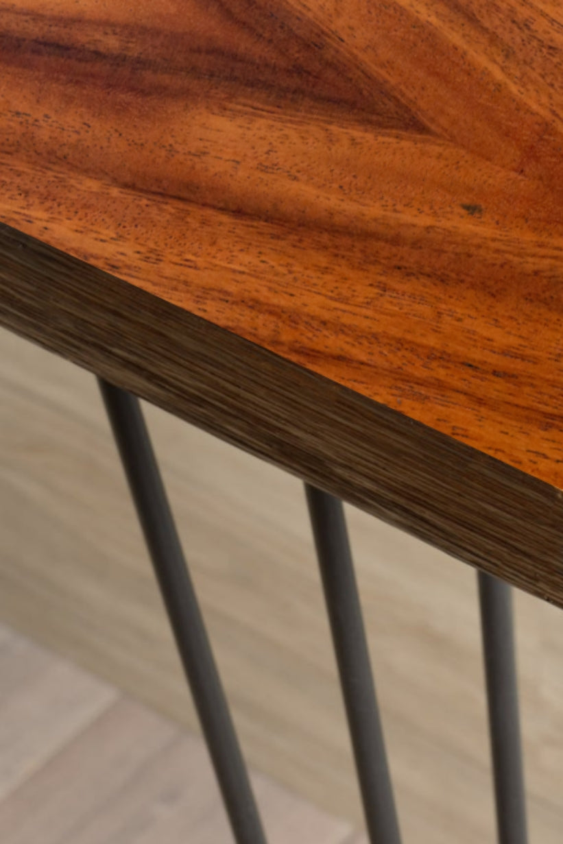 • Material: Cuenta con un acabado de madera "tzalam" unas de las más lucidas y resistentes en el mercado, por relucir sus vetas, resistencia y colores, Faldón de 5cm en los bordes. Acabado poliuretano mate.Con una base de estructura metalica, Ptr de 1 pulgada, color negro mate.