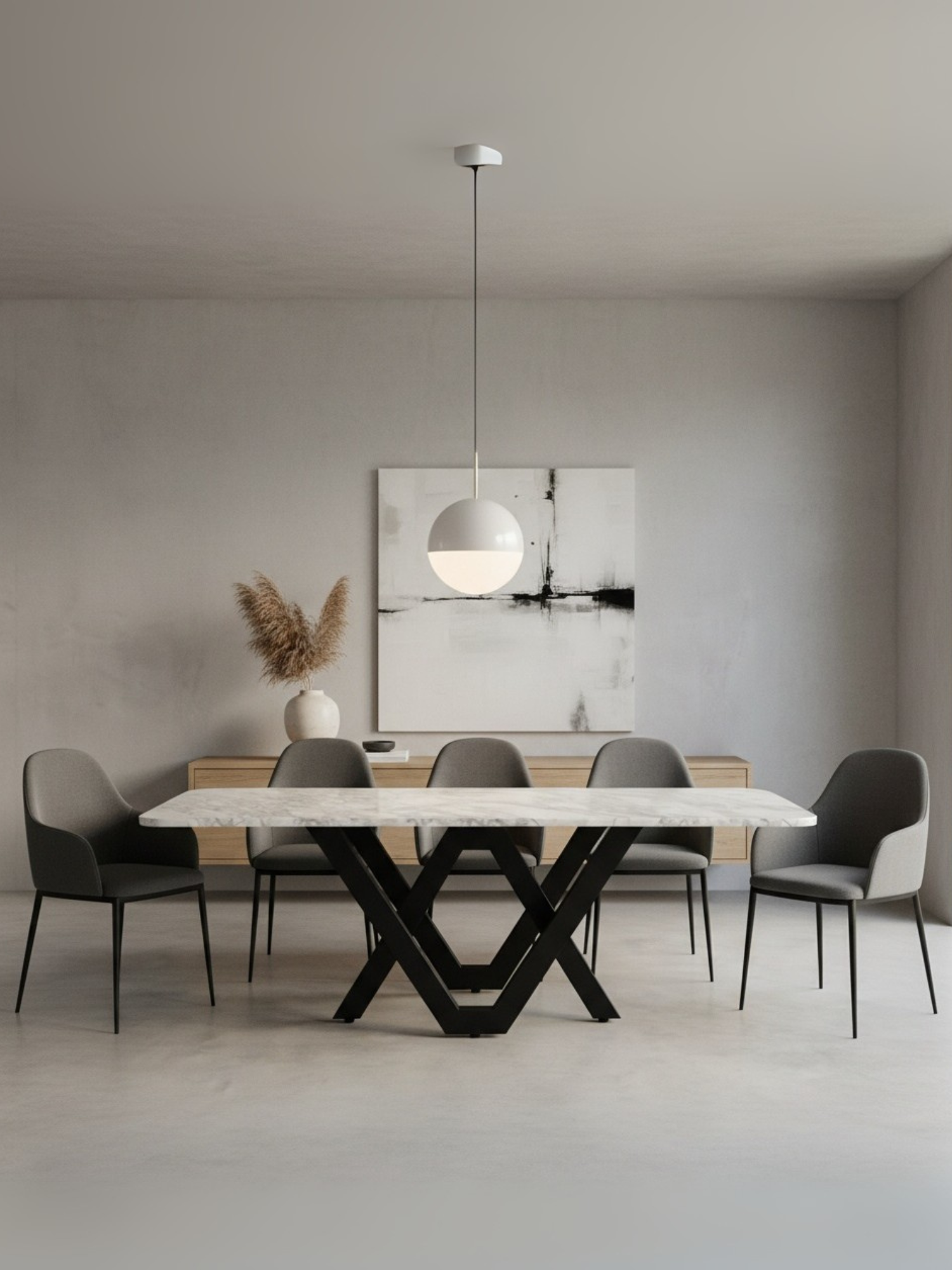 • Descripción: mesa para comedor,  una pieza de mobiliario de alta gama, diseñada para tu mesa comedor ideal. Su característica más destacada es su cubierta de mármol Blanco Carrara venato