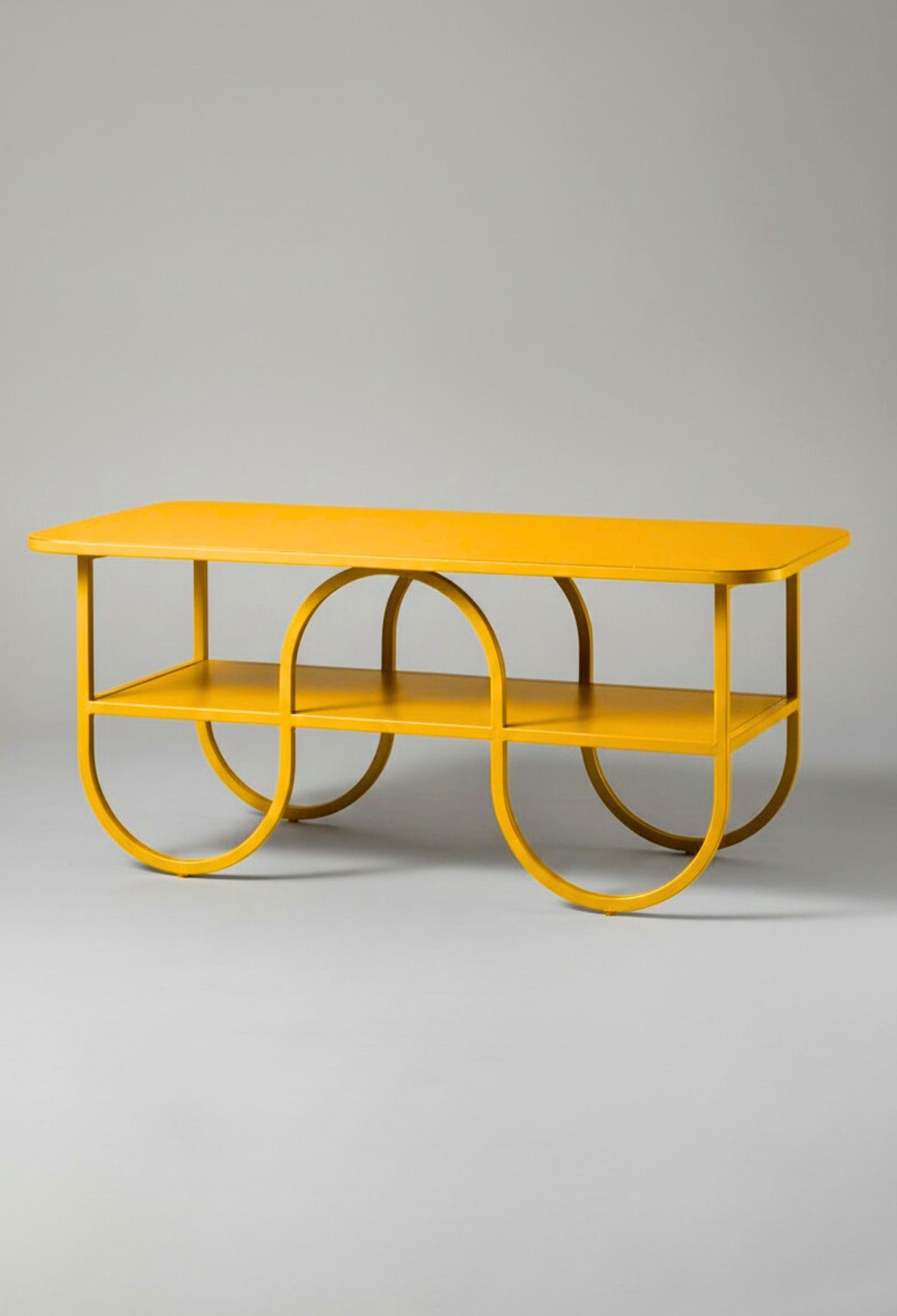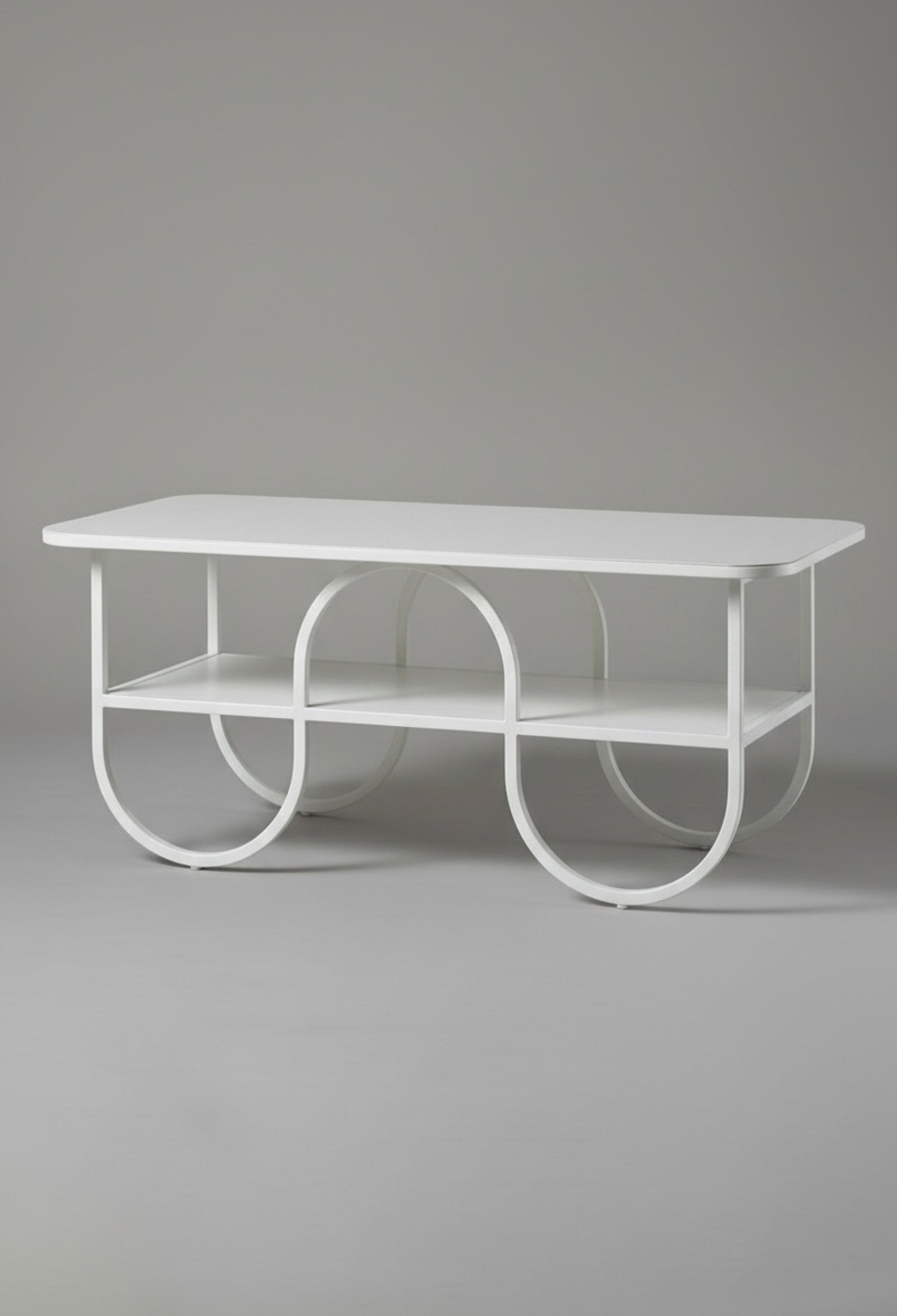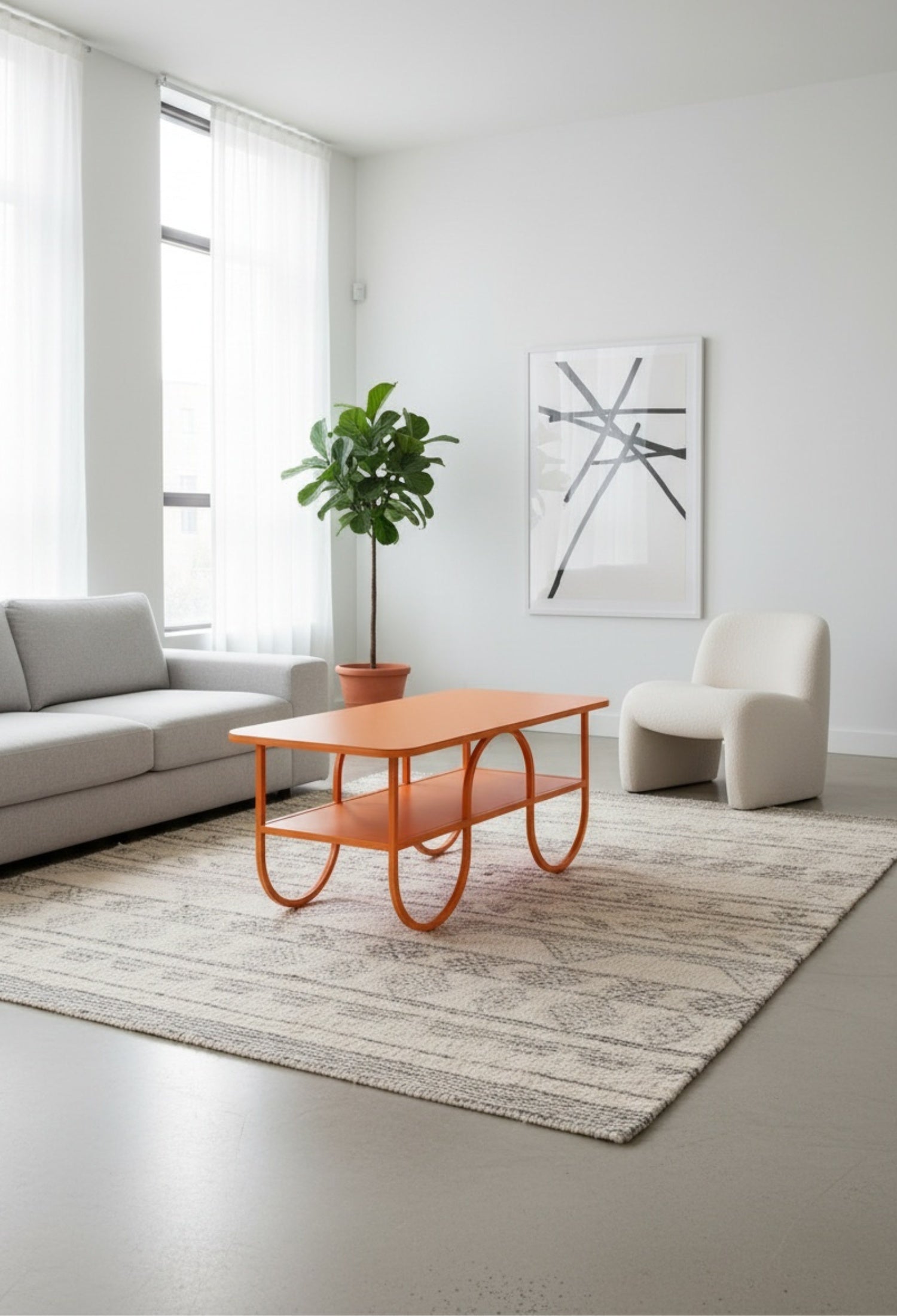 Mesa de centro con diseño asimétrico de dos niveles que combina funcionalidad y estilo moderno. Su estructura de acero resistente y acabado mate la convierten en una pieza versátil perfecta para salas contemporáneas, donde podrás organizar libros, decoración y objetos personales en diferentes alturas.