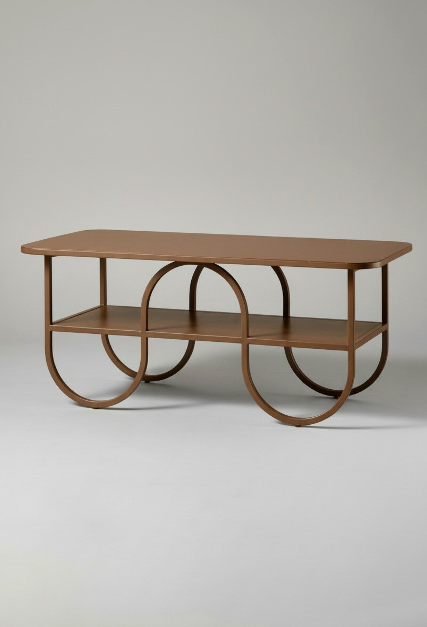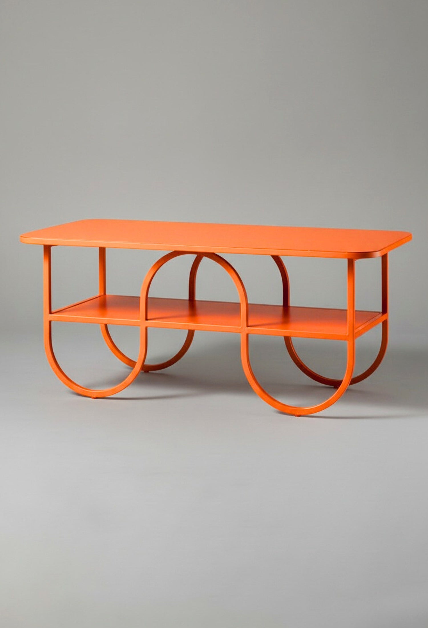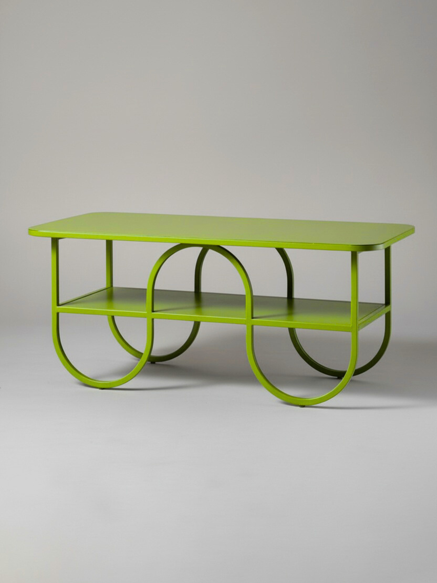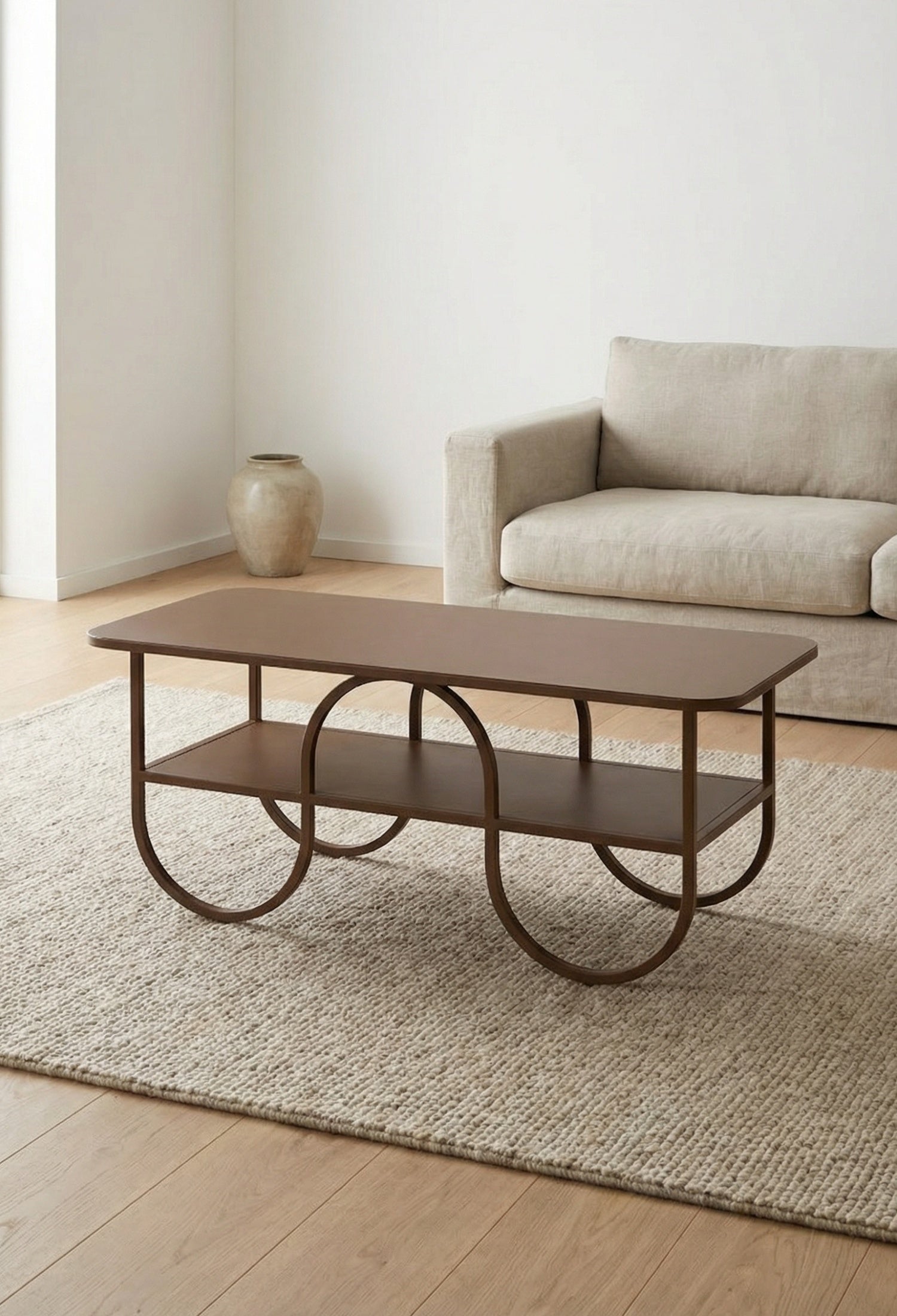 Mesa de centro con diseño asimétrico de dos niveles que combina funcionalidad y estilo moderno. Su estructura de acero resistente y acabado mate la convierten en una pieza versátil perfecta para salas contemporáneas, donde podrás organizar libros, decoración y objetos personales en diferentes alturas.