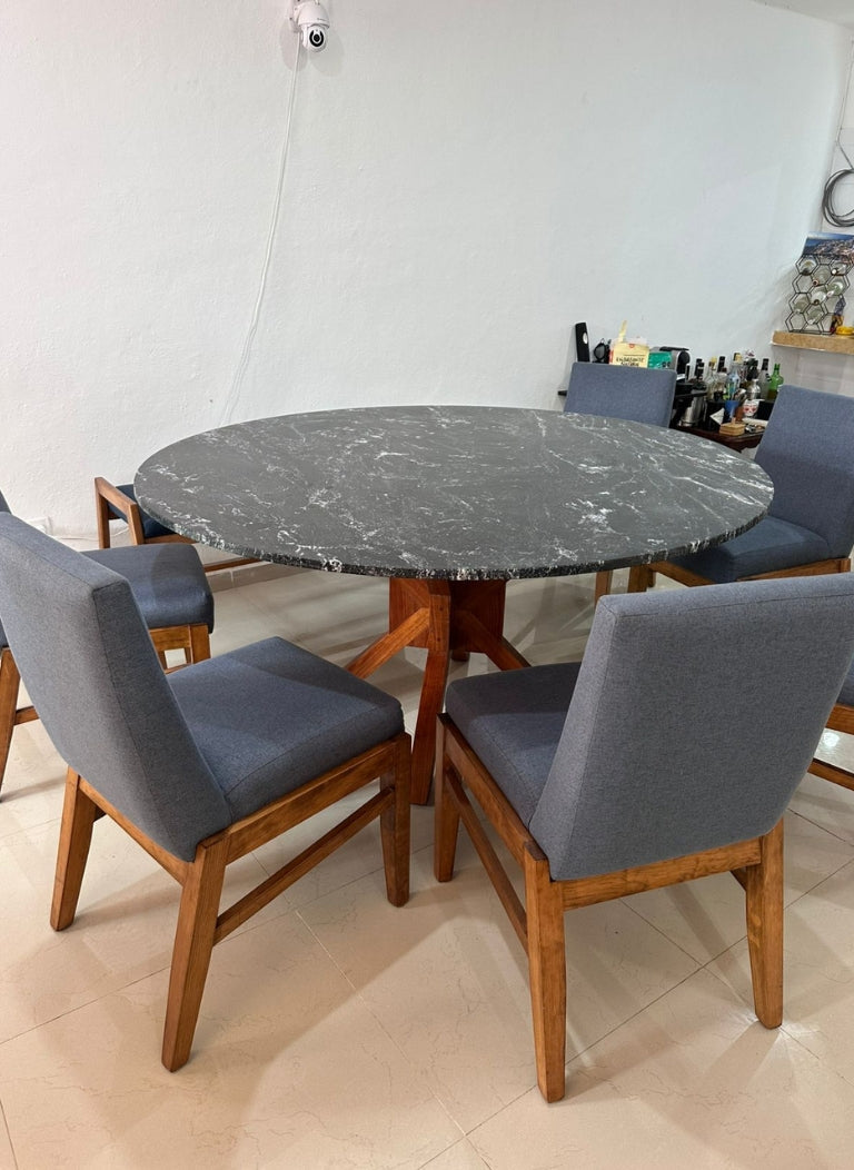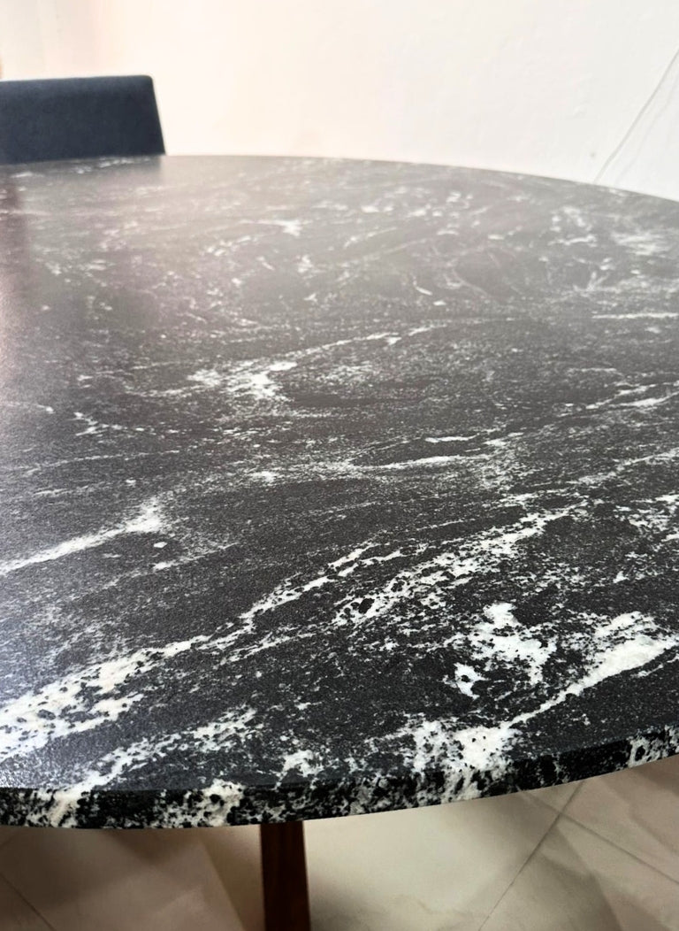 • Características principales: Cubierta de Granito negro de Máxima Calidad: La mesa comedor cuenta con una superficie de granito auténtico de la más alta calidad.  El granito es conocido por su resistencia, durabilidad y belleza natural.  Cada mesa puede presentar variaciones únicas en la textura y los patrones del mármol, lo que la convierte en una pieza.