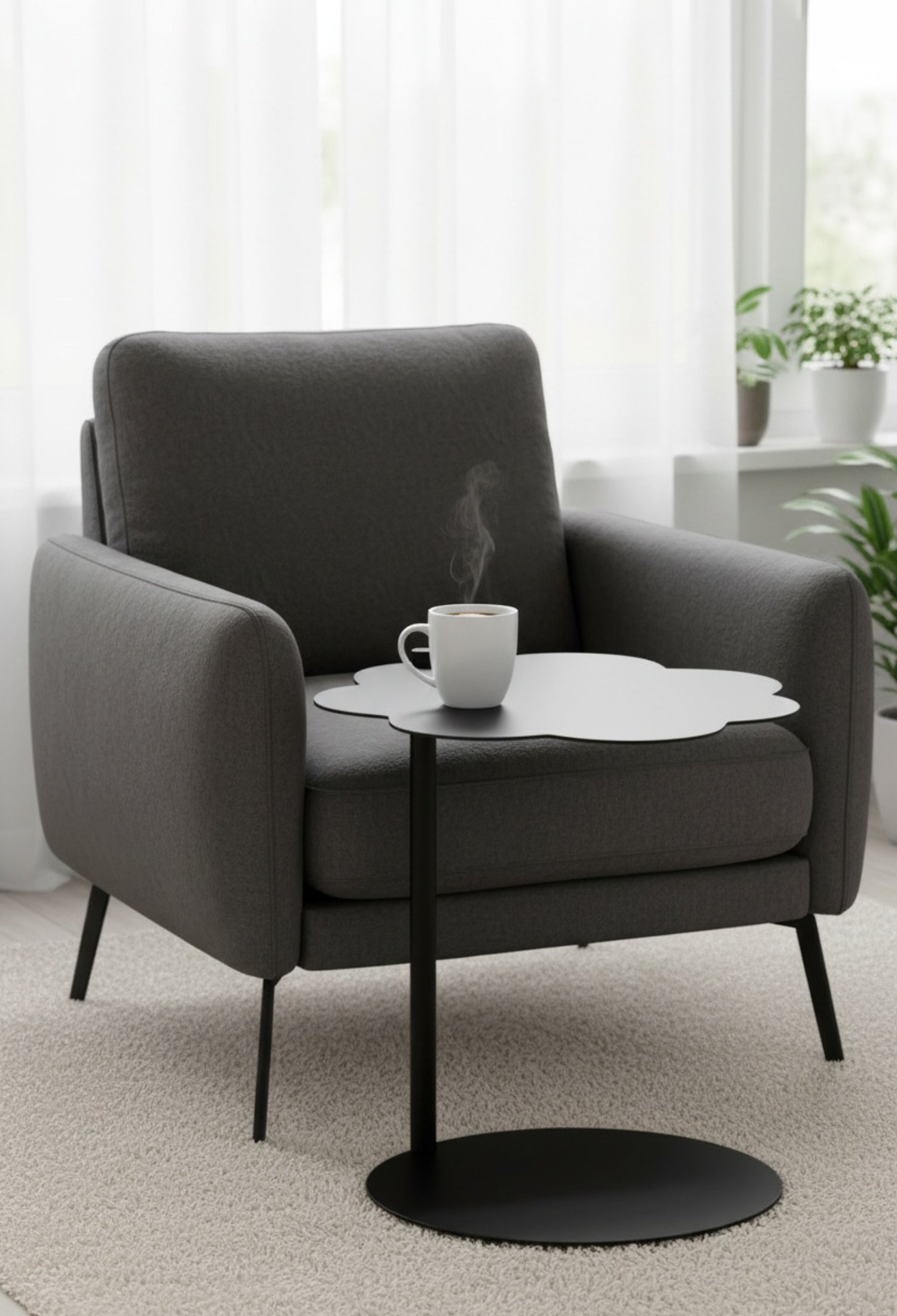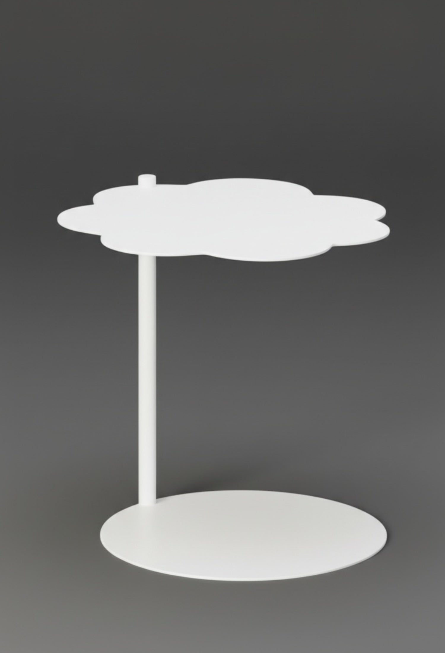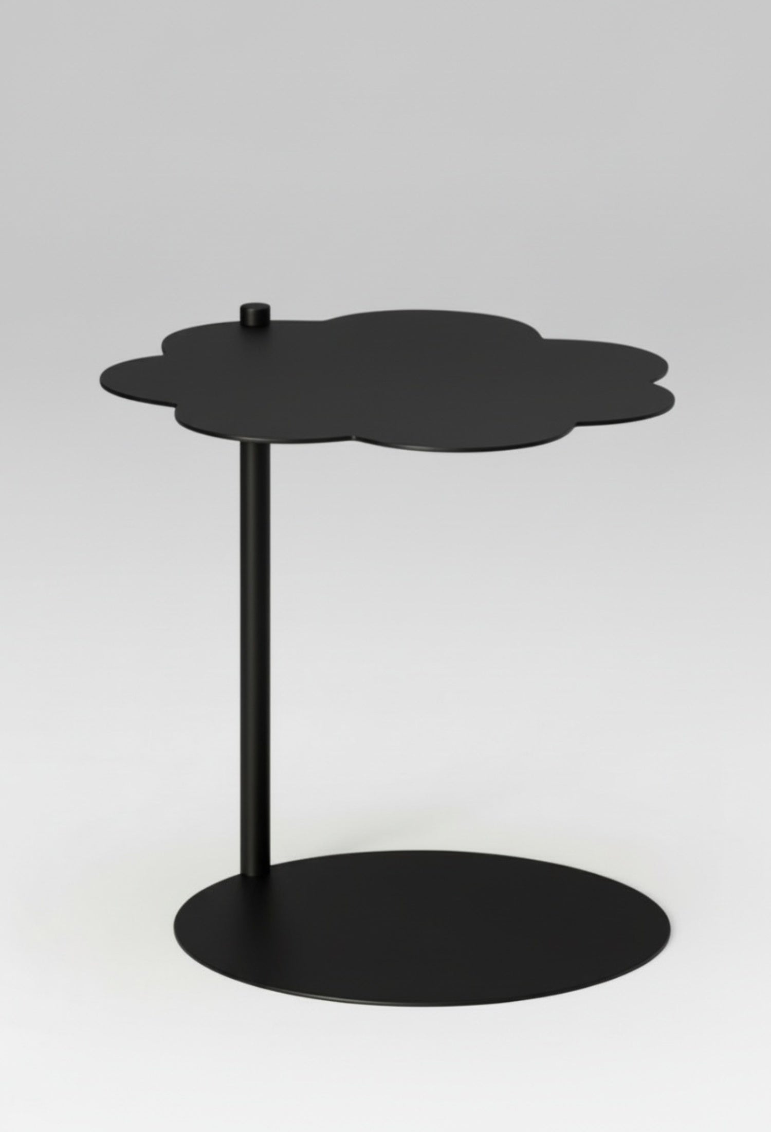 Mesa lateral cilíndrica con diseño moderno y estructura de acero resistente. Su forma de nube y acabado poliuretano mate la hacen perfecta para salas, recámaras o estudios con estilo contemporáneo. Disponible en negro y blanco para adaptarse a diferentes ambientes.