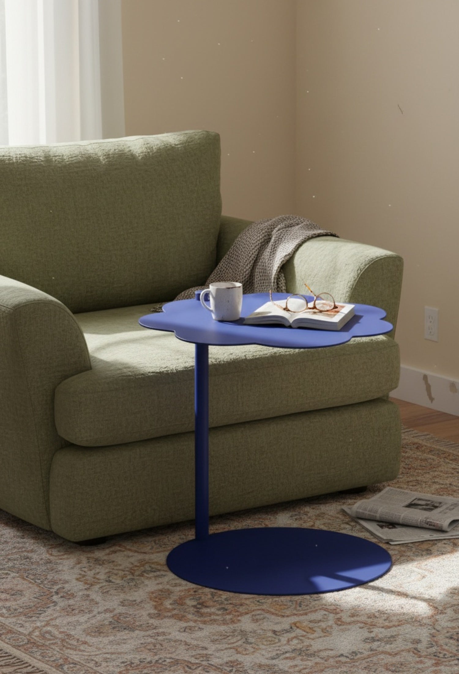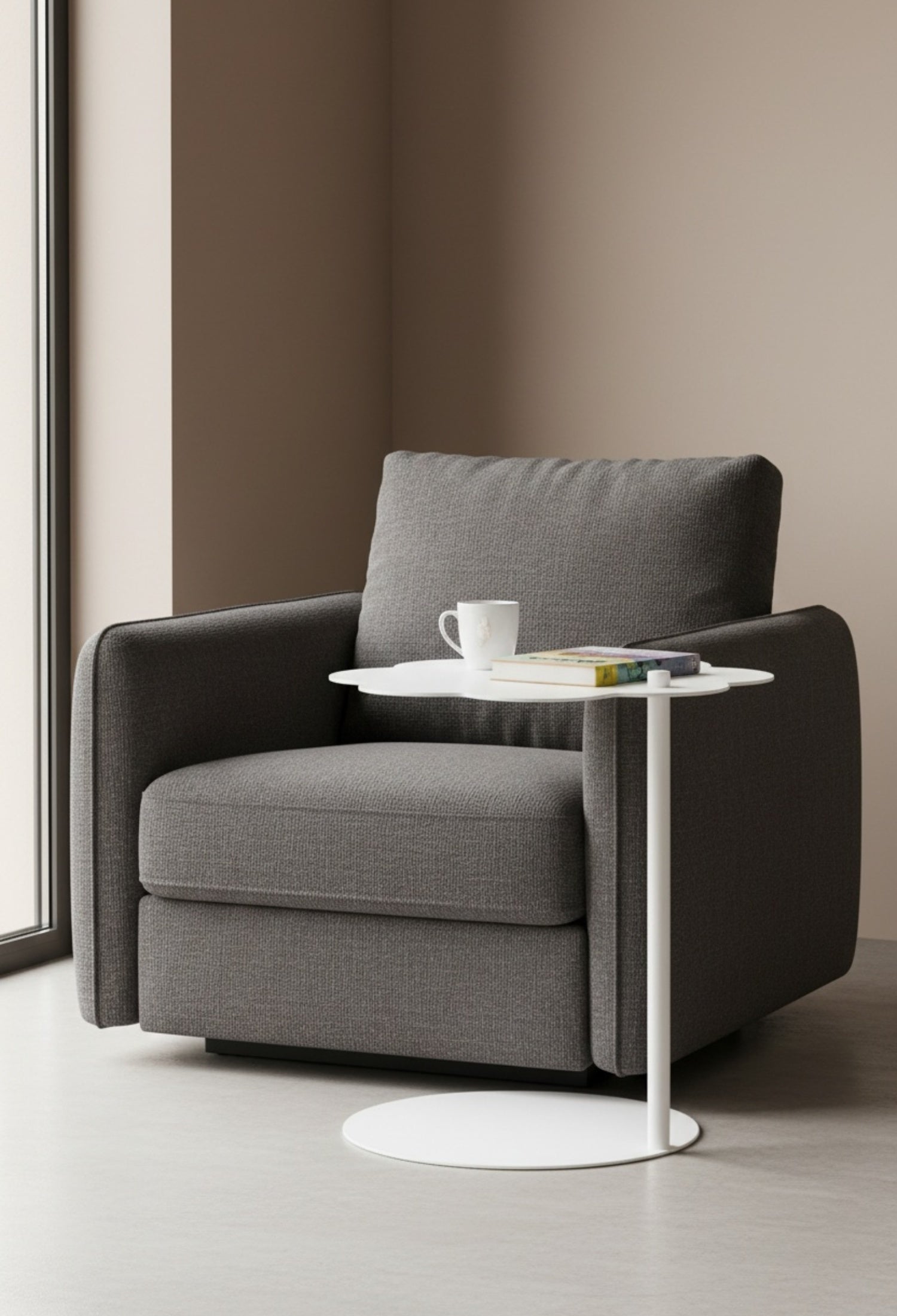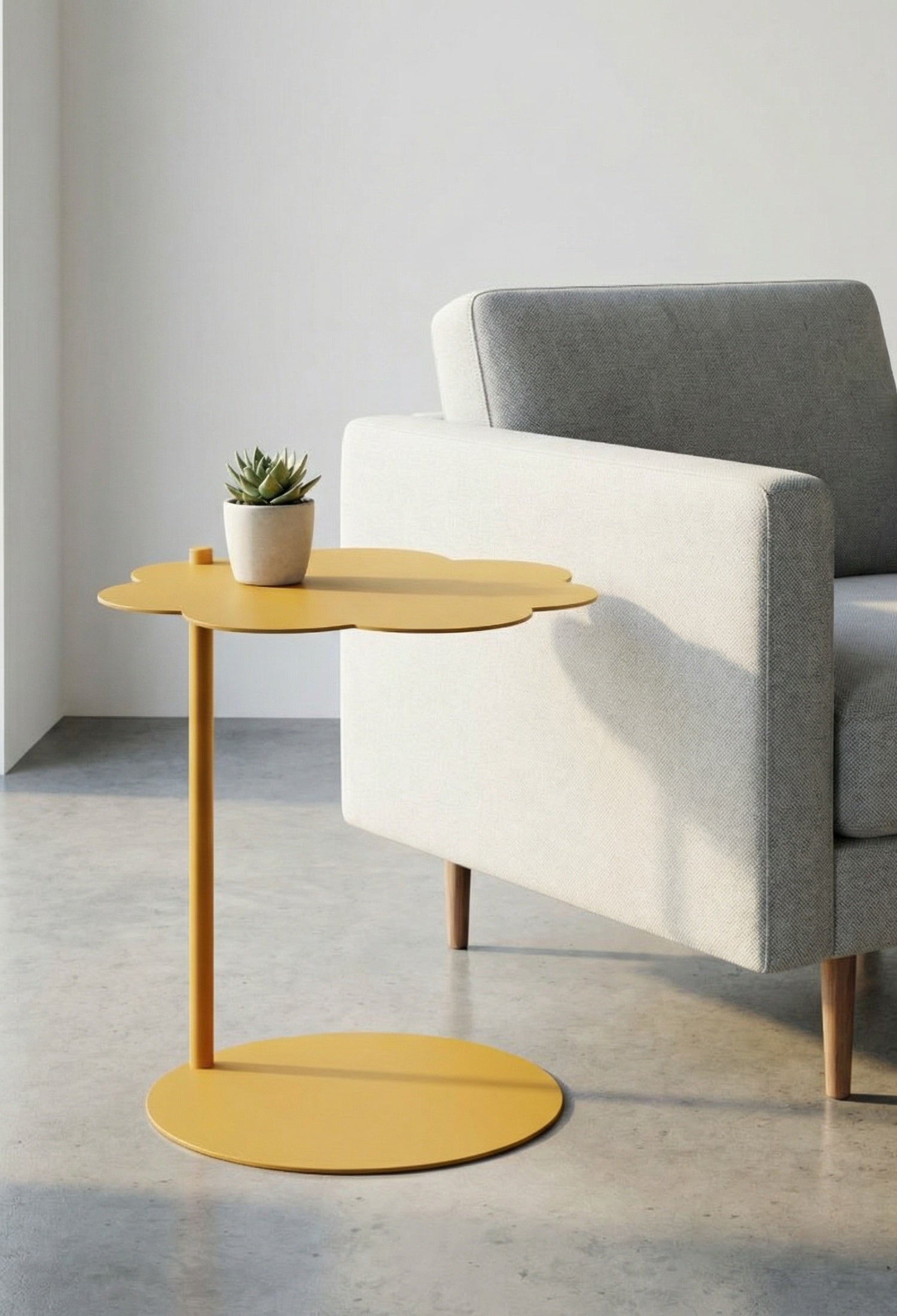 Mesa lateral cilíndrica con diseño moderno y estructura de acero resistente. Su forma de nube y acabado poliuretano mate la hacen perfecta para salas, recámaras o estudios con estilo contemporáneo. Disponible en negro y blanco para adaptarse a diferentes ambientes.