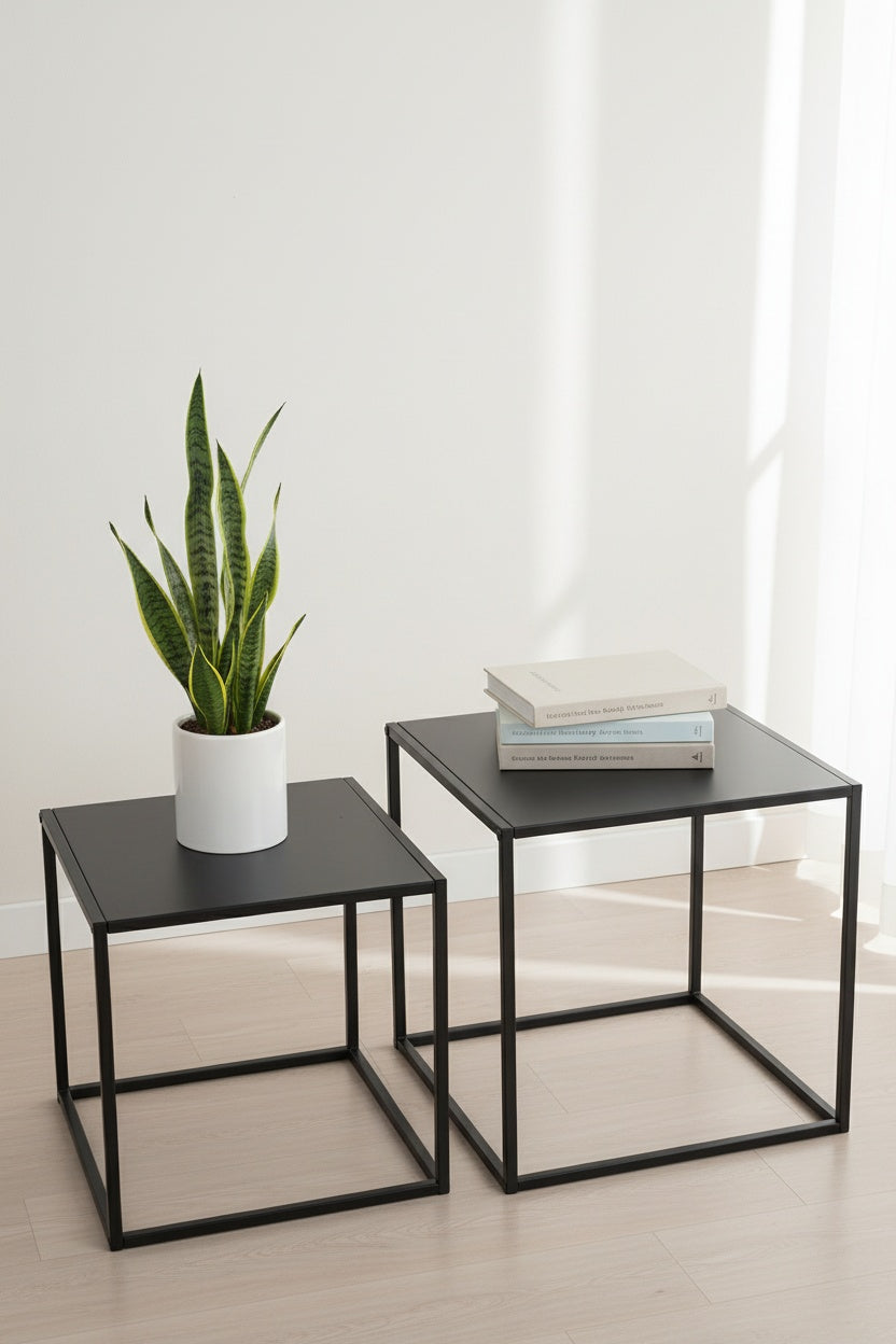 Descripción: Conjunto de 2 mesas auxiliares con forma cuadrada. Estás mesas laterales decorativas son prácticas y perfectas para cualquier hogar.